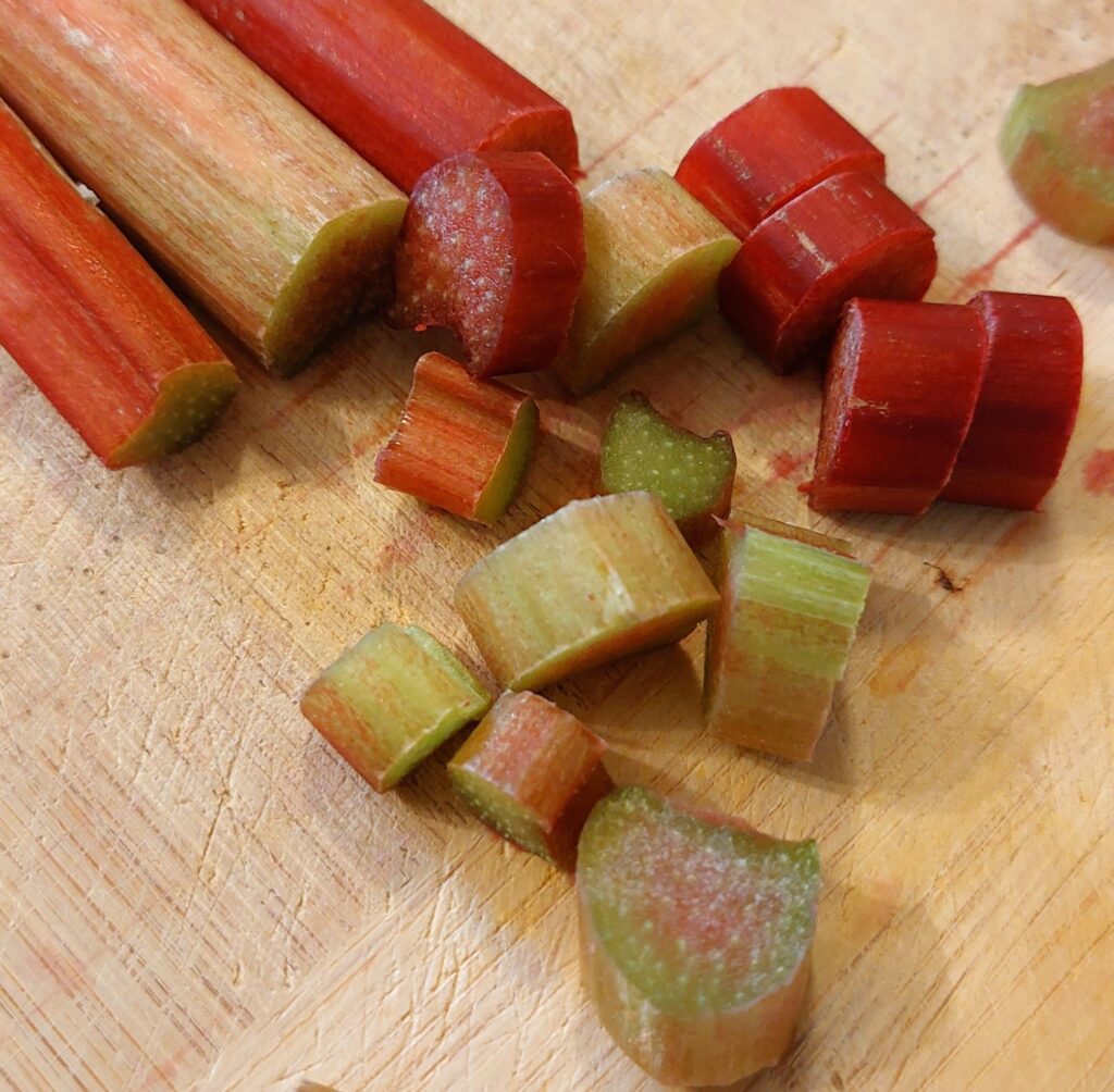- Rhubarb– Fresh rhubarb is preferred, but you can also use frozen rhubarb. Rhubarb has a tart and sour taste.