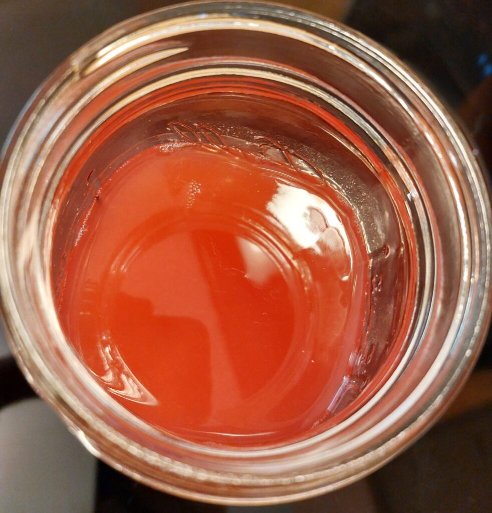 - Once the mixture is cool enough to touch, place a small strainer over a quart jar and slowly spoon the mixture into the strainer.