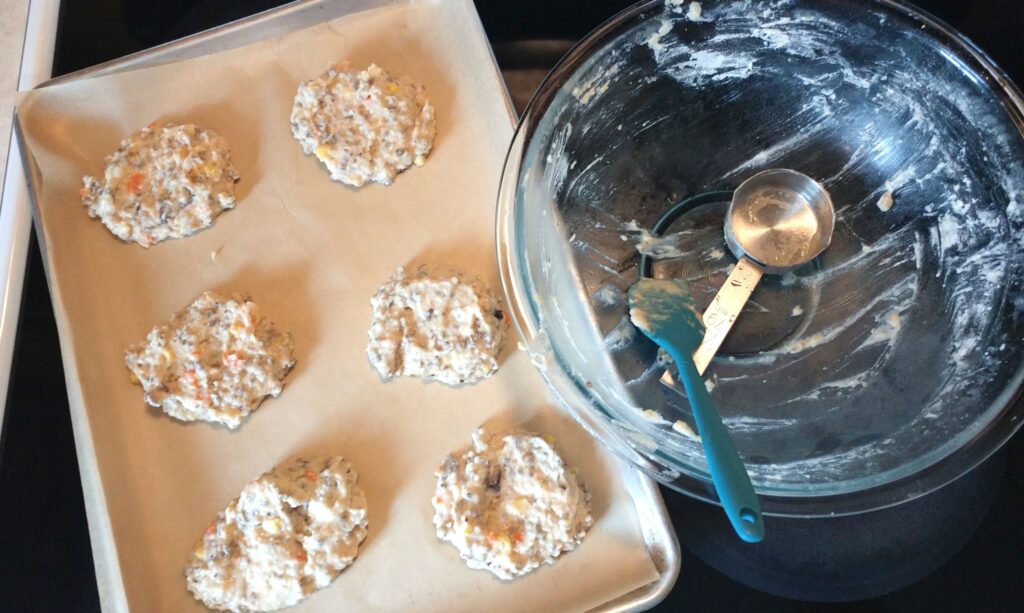 - Prepare a baking sheet with parchment paper, scoop out about 1/3 cup or more (depending on how big you would like your burgers) of the mixture and flatten so that it resembles a burger. Continue until the baking sheet is full.